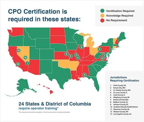 CPO certification is required in 24 states for licensure and approved in 48 states for licensure.